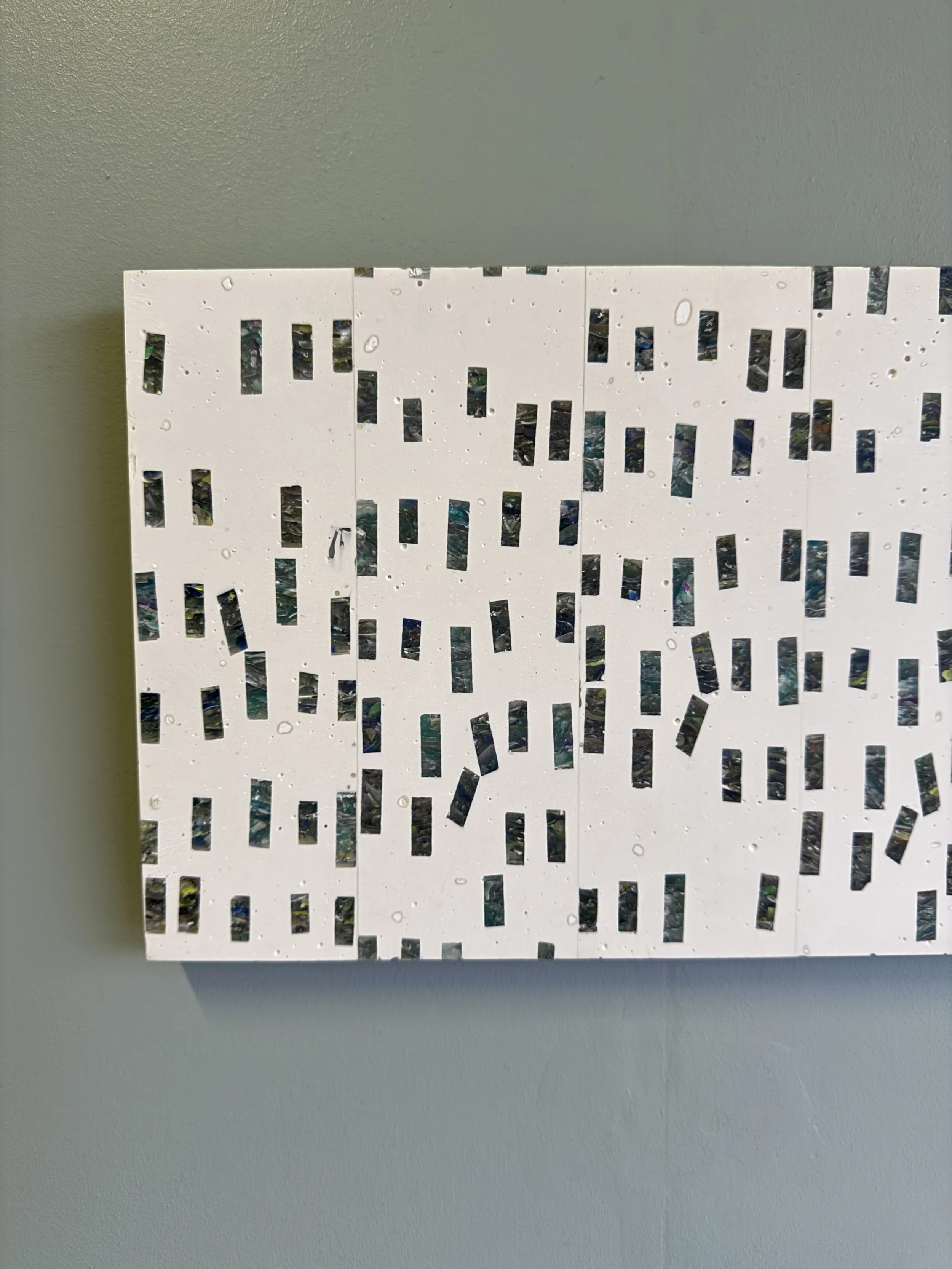 Marquetry: Recycled CD blocks cast in Jesmonite created as a test