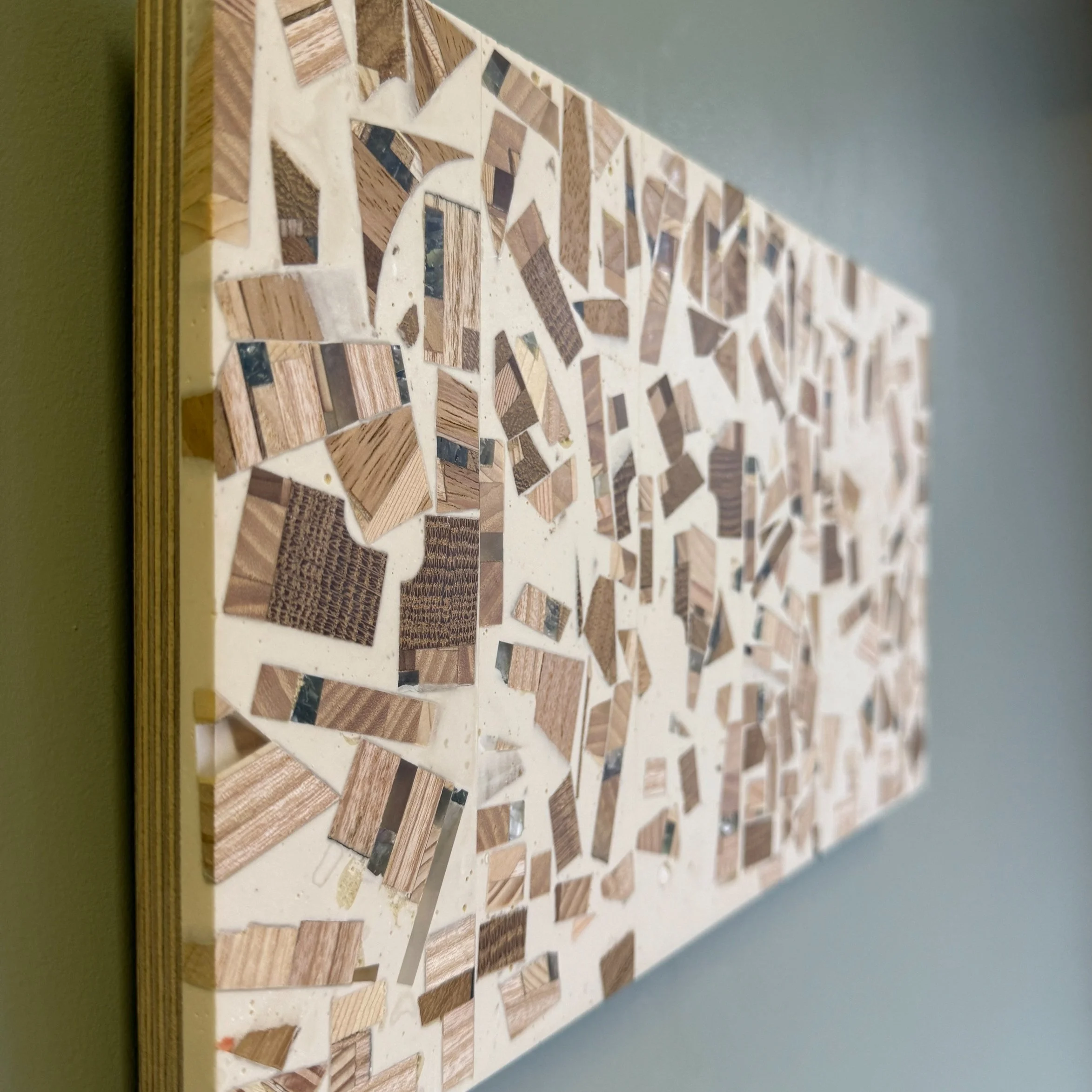 Designed around what others discard. Our signature Modern Marquetry styles turn readily available off-cuts into scalable, customisable surfaces—maximising the potential of local waste materials.